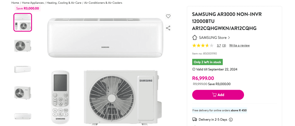 That’s right, you’re saving a whopping R3,000! It’s like Christmas came early, except instead of a jolly fat man coming down your chimney, you’re getting a sleek, efficient cooling machine.